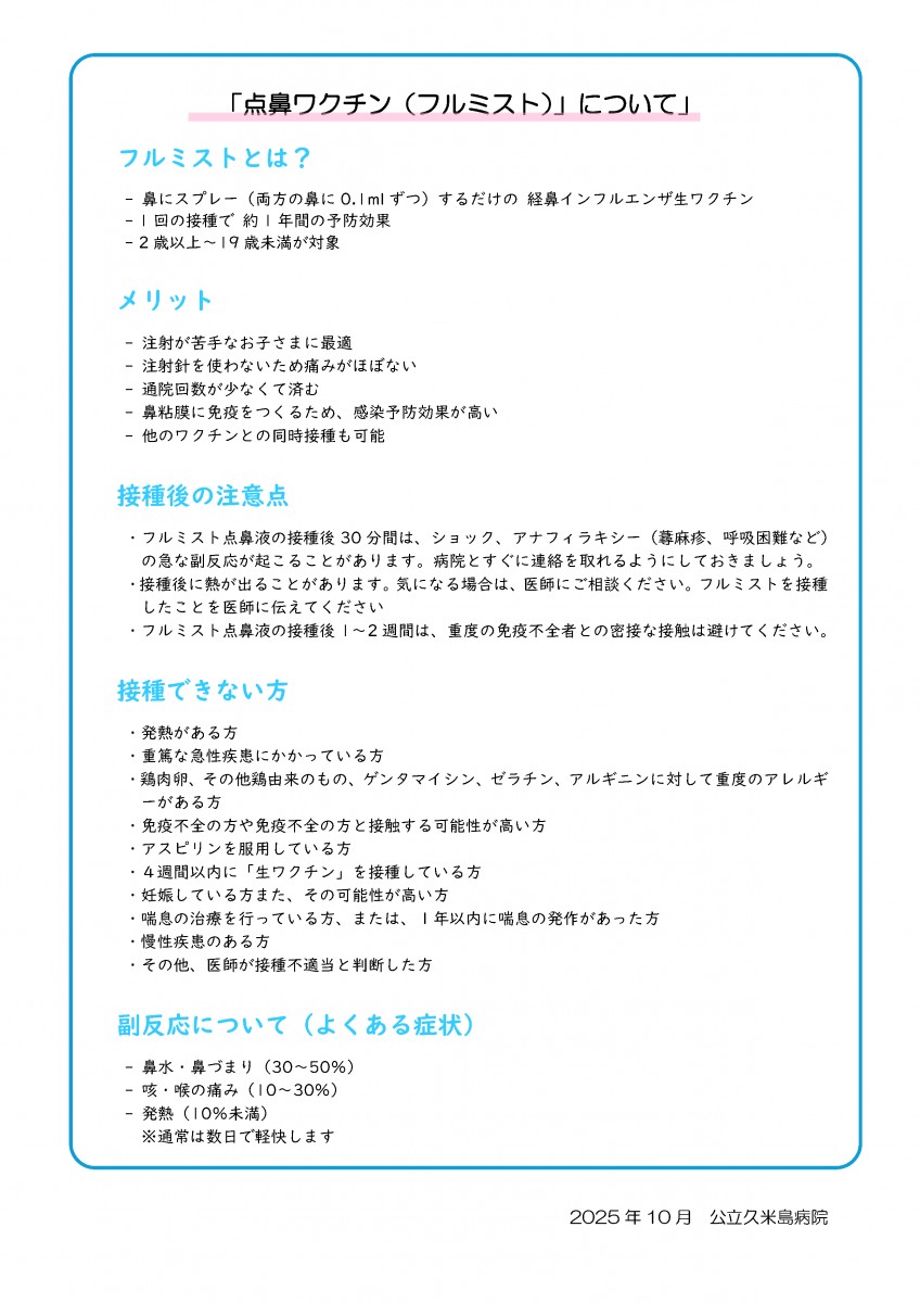 2025年度 小児インフルエンザワクチンについて(R7.10月~)